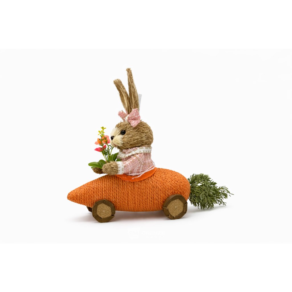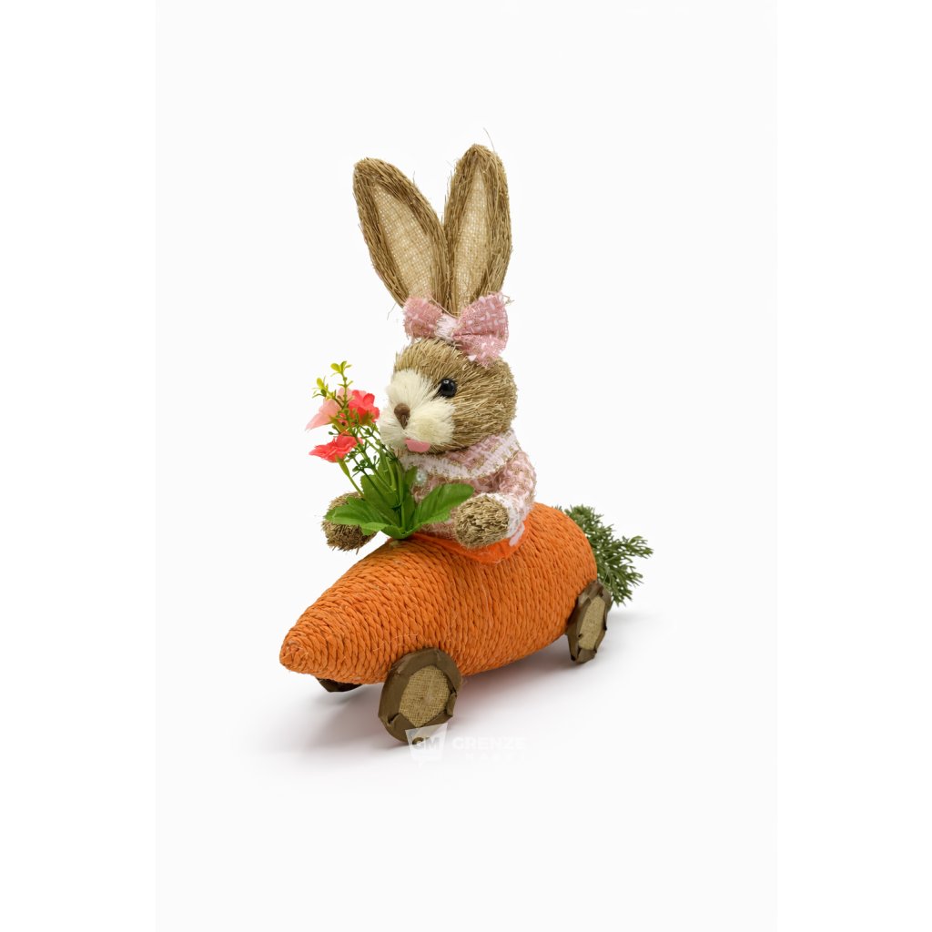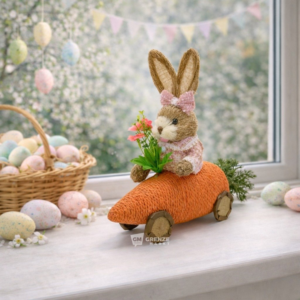 Slámový velikonoční zajíc holka S25-31B 35 cm zaujme na první pohled svým jemným, přirozeným vzhledem plným jarní atmosféry. Roztomilý zajíček v dívčím provedení s kytičkou v náručí, sedící na mrkvi v sytě oranžové barvě, navozuje pocit radosti a klidu. Každý detail je pečlivě zpracovaný v duchu ručně vyrobené dekorace, která spojuje tradiční materiály s citem pro estetiku.