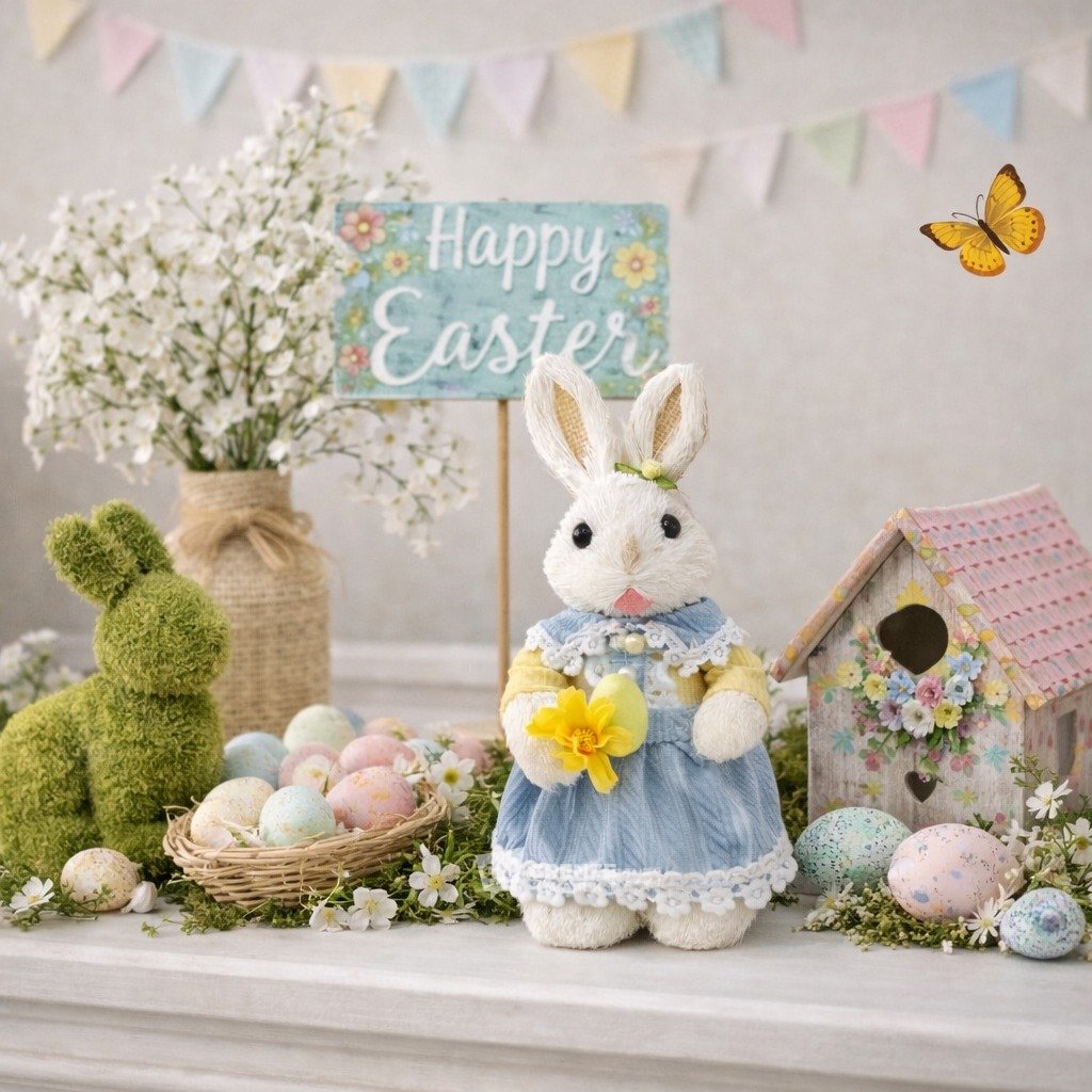 Stačí jediný ručně vyrobené dekorativní prvek, aby prostor získal lehký sváteční nádech. Jemné barvy v kombinaci s přírodními materiály působí harmonicky, přirozeně a snadno se kombinují s různými styly velikonoční výzdoby.