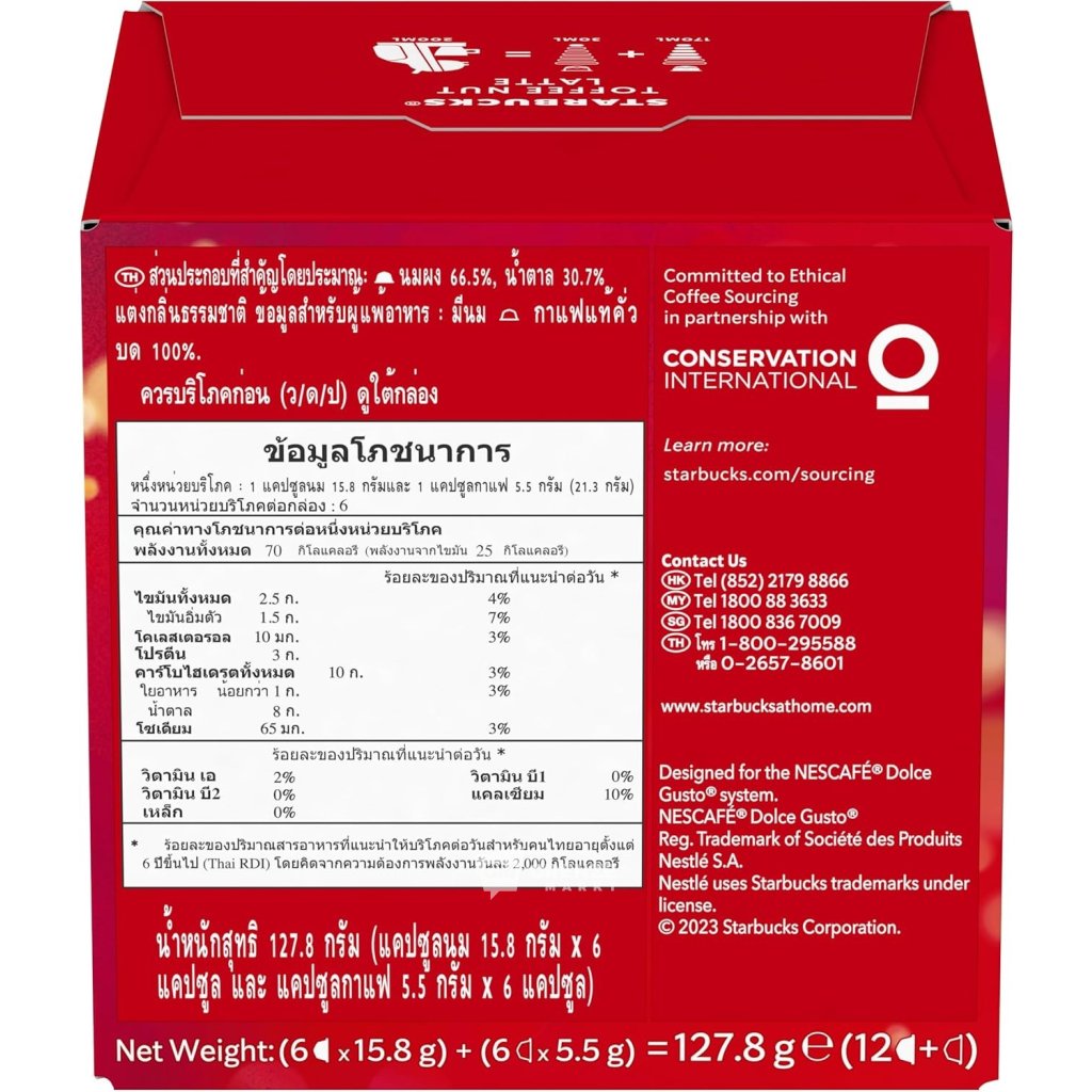 Pokud máte rádi krémové latte, ale zároveň nechcete ztratit výraznou chuť kávy, Starbucks Dolce Gusto Toffee Nut Latte vás určitě potěší. Ořechová chuť je intenzivní hned na začátku, poté se přidá bohaté espresso, které dokonale vyvažuje karamel a mléko – výsledkem je jemná, sladká a harmonická chuť jako z kavárny Starbucks.