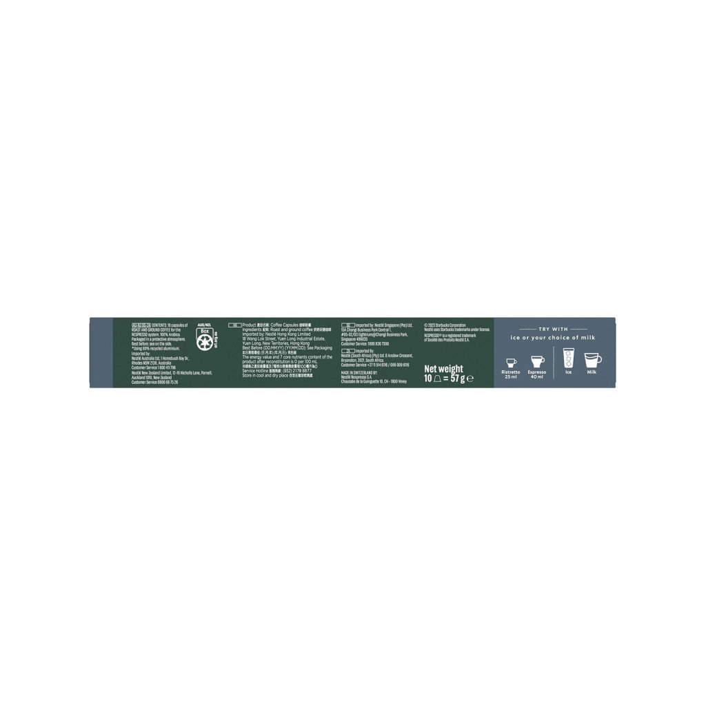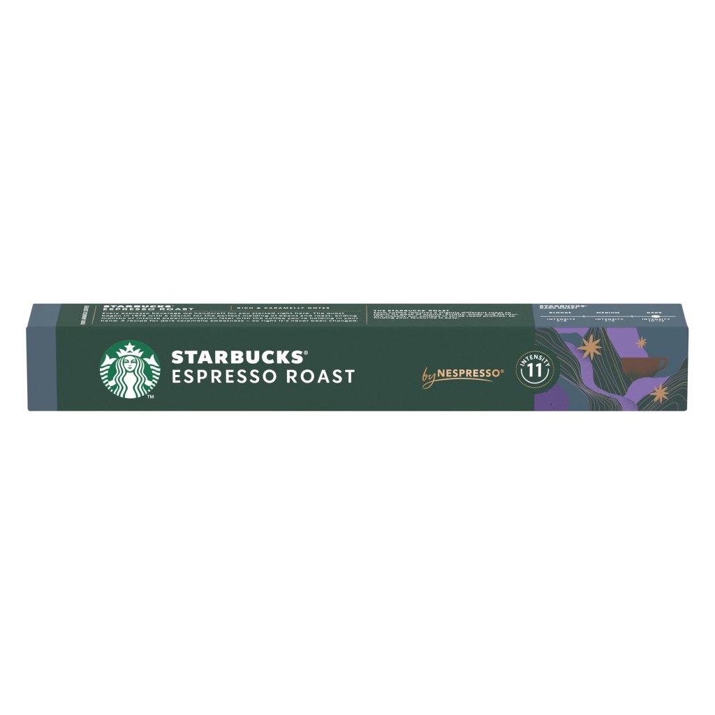 Objevte plnou chuť Starbucks Espresso Dark Roast Nespresso 10 kapslí v každém doušku. Ideální volba pro milovníky tmavě pražené kávy.