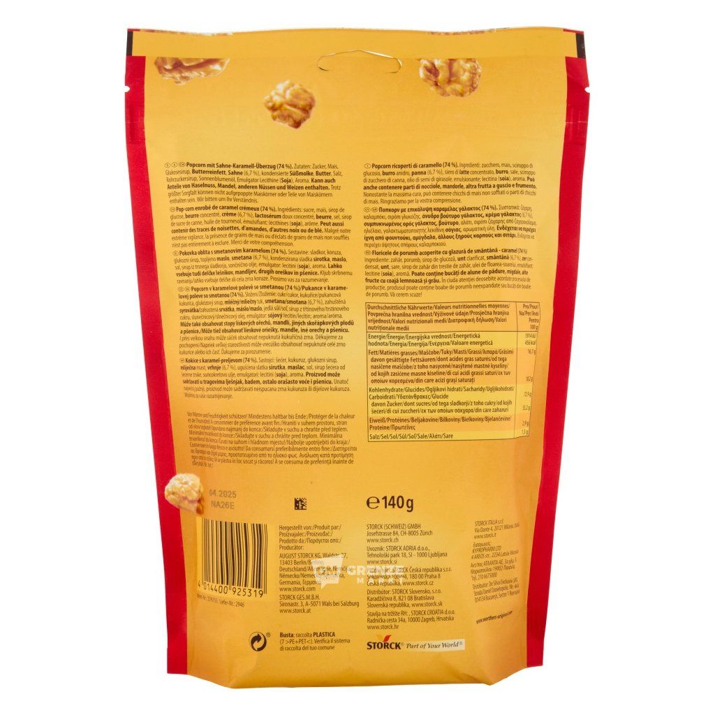 STORCK Werther’s Original karamelový popcorn 140 g přináší intenzivní chuťový zážitek díky bohaté vrstvě krémového karamelu, která dokonale obaluje každé křupavé zrno kukuřice. Spojení jemné sladkosti a smetanového aroma vytváří ideální snack pro každou příležitost.