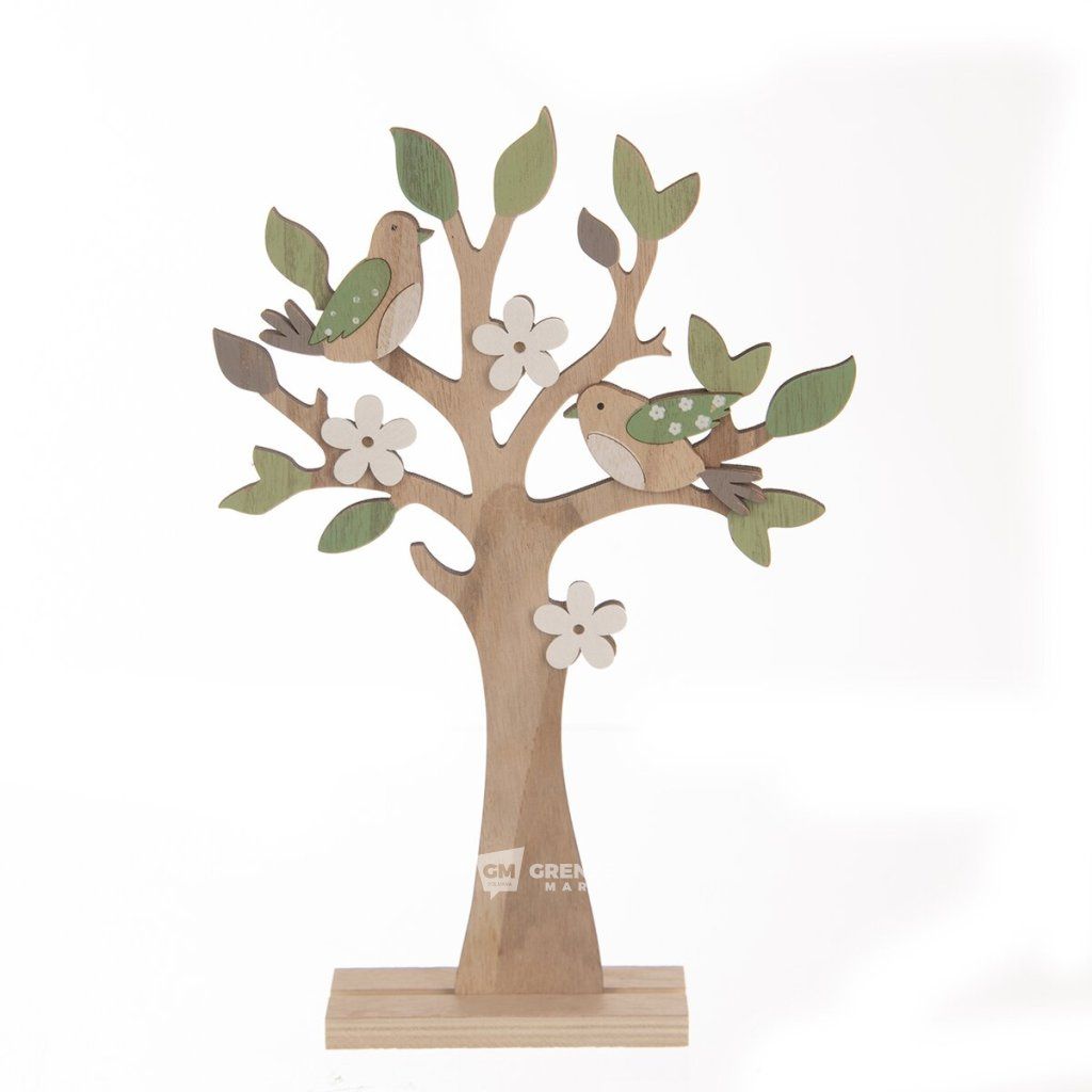 Strom dřevo ptáčci hnědý/zelený 31 cm