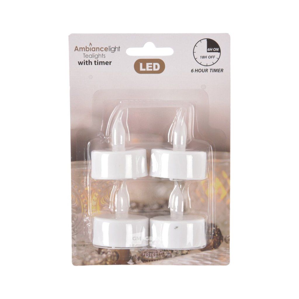 Svíčka UH dekor. čajová LED+časovač 4 ks