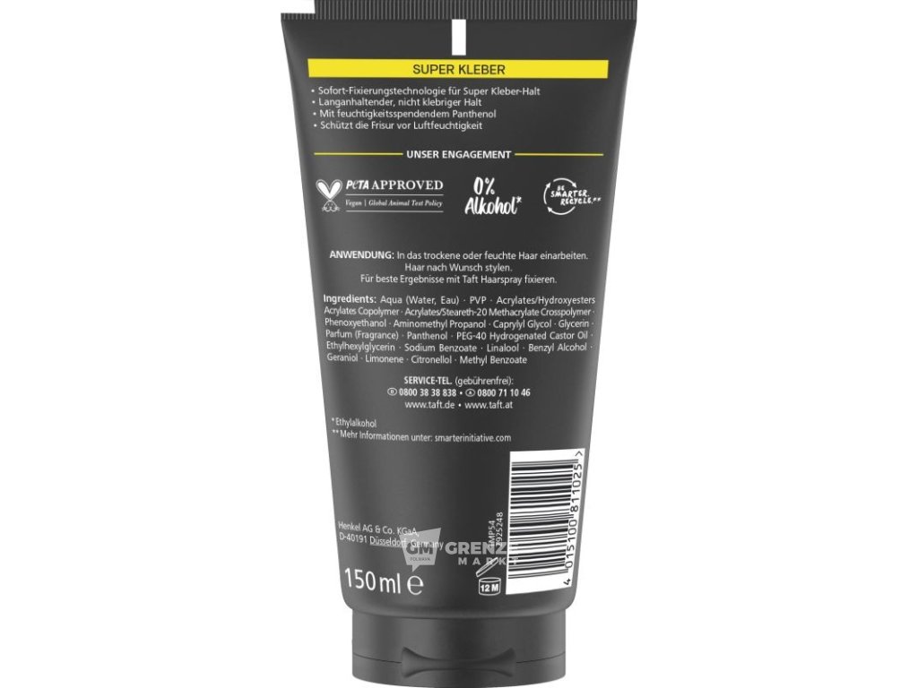 Spojení silné fixace a šetrného složení dělá z Taft Super Kleber Halt 14 gel na vlasy 150 ml ideální volbu pro každodenní úpravu účesu s dlouhotrvajícím efektem.