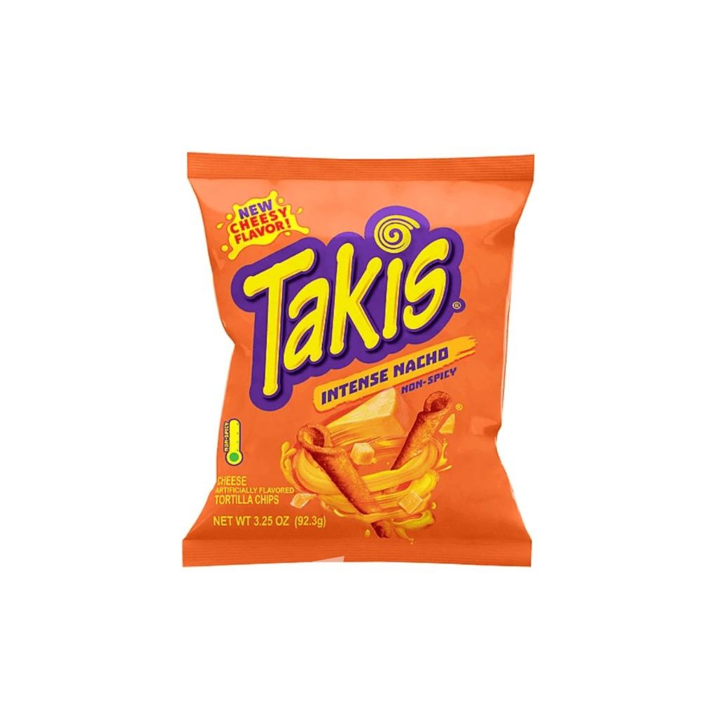 Takis Intense Nacho kukuřičné chipsy 100 g jsou ideální volbou pro milovníky kukuřičných snacků s výraznou sýrovou chutí bez pálivosti. Produkt je vyroben z křupavé smažené kukuřičné mouky a ochucen bohatým nacho kořením, které nabízí plnou chuť v každém typickém zatočeném kousku Takis. Výrazná sýrová chuť s vyváženou slaností a jemnou sladkostí činí tento snack snadno oblíbeným a vhodným pro různé příležitosti během dne.