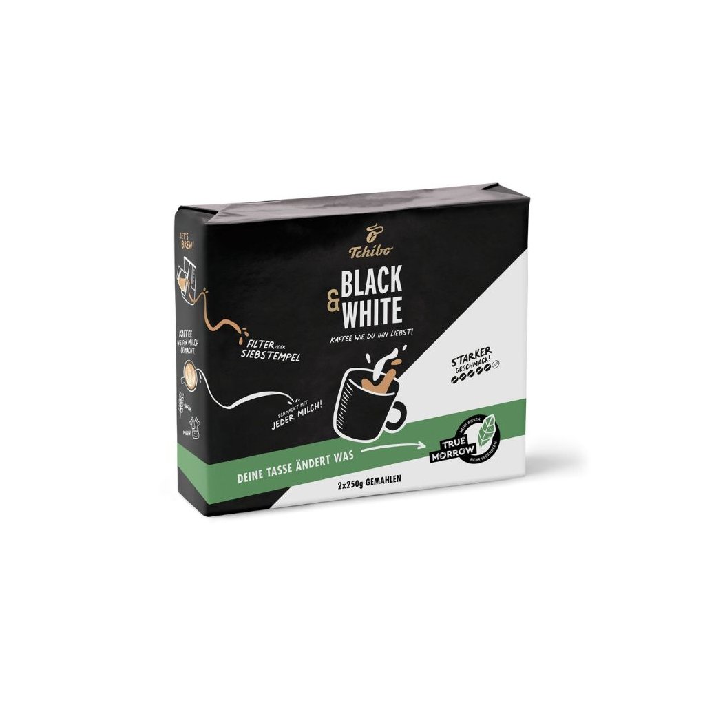 Každý šálek Tchibo Black&White mletá káva 2x250g přináší výjimečný okamžik, který dodá vašim dnům energii a chuťovou harmonii.