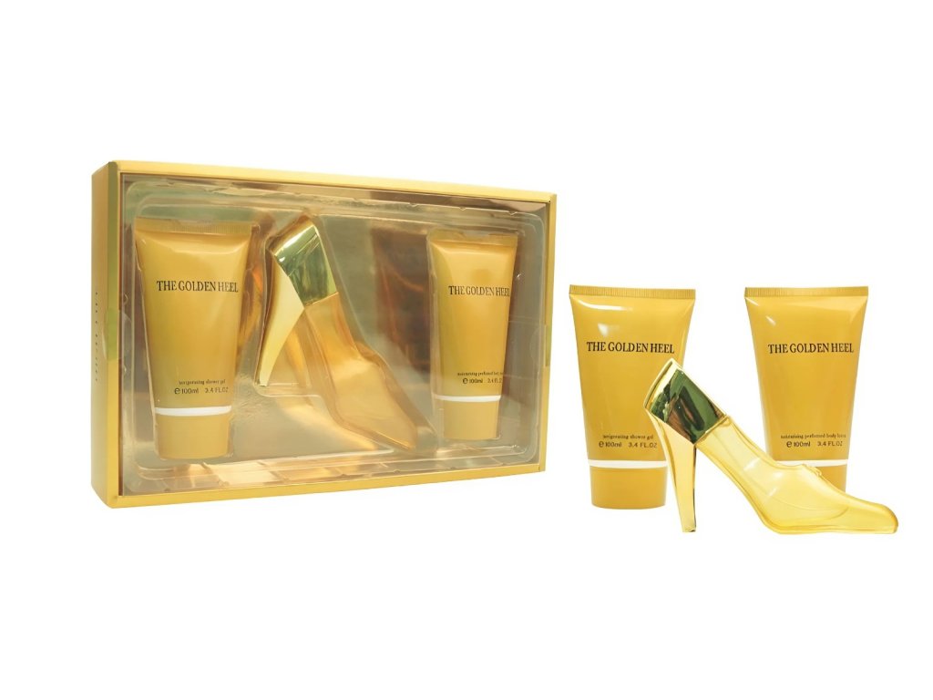 The Golden Heel dárková sada parfémované vody pro ženy 3 ks přináší luxusní zážitek z vůně, navržený speciálně pro ženy. Spojuje kouzlo parfému, osvěžujícího sprchového gelu a hydratačního tělového mléka, díky nimž budete sebevědomá a okouzlující v každém okamžiku.