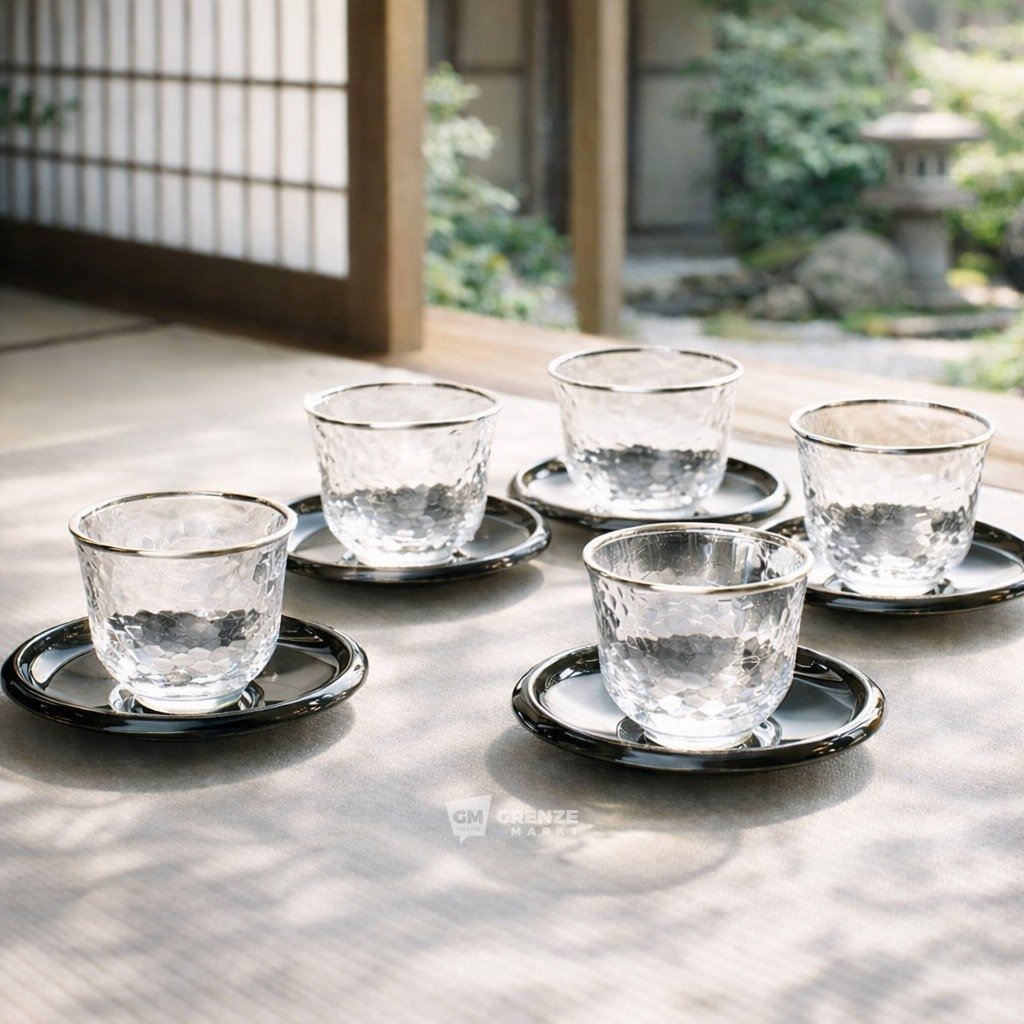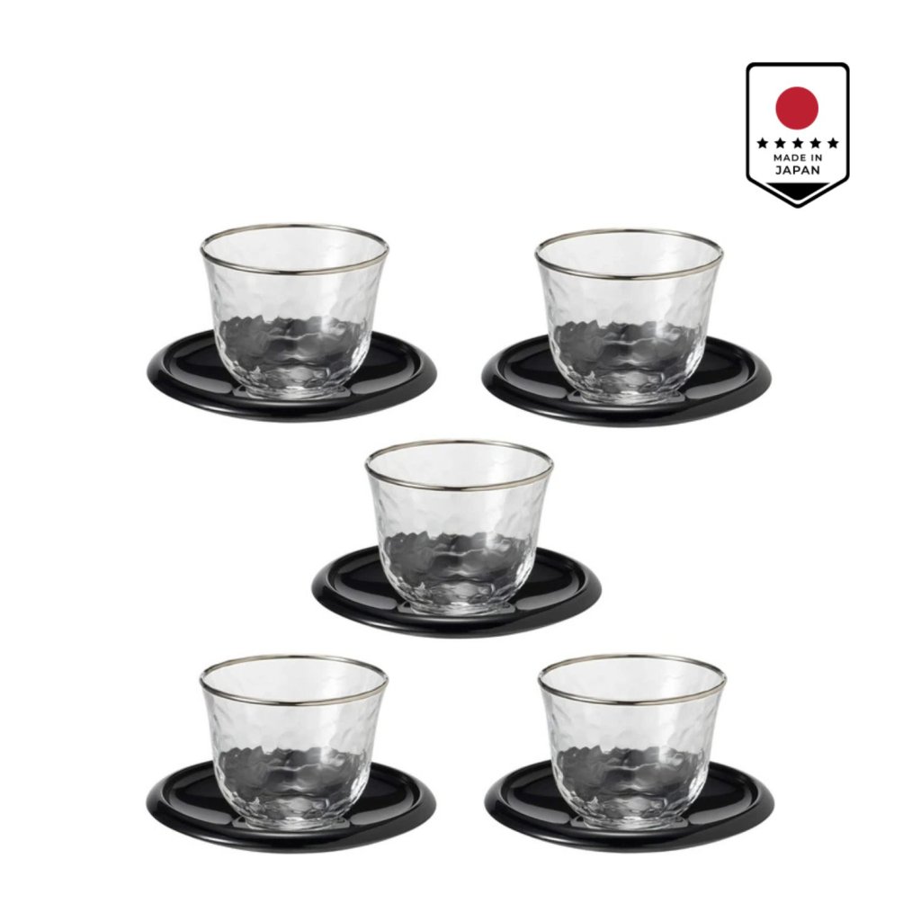 Součástí sady jsou černé podšálky, které zvýrazňují krásu sklenic a vytvářejí vyvážený a sofistikovaný celek. Tento kontrast činí prémiovou japonskou čajovou sadu ideální volbou pro domácí i pracovní prostředí.
