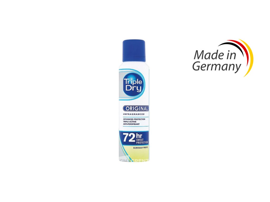 Triple Dry Deo Spray Dry Classic 150ml je vysoce výkonný antiperspirant, který účinně kontroluje pocení po dobu až 72 hodin. Díky klinicky ověřené trojité aktivní receptuře je vhodný pro muže i ženy a poskytuje dlouhotrvající pocit sucha a svěžesti. Praktické balení s jemným rozprašovačem umožňuje rychlé a rovnoměrné nanášení bez mastného pocitu. Neobsahuje parfém, což umožňuje snadnou kombinaci s jinými voňavými produkty.