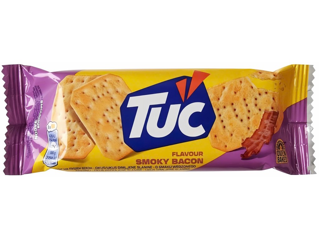 Nechte kouřovou chuť a křehkost TUC Smoky Bacon rozzářit vaše chuťové buňky. Každý kousek přináší harmonii tradice a lahodné křupavosti.