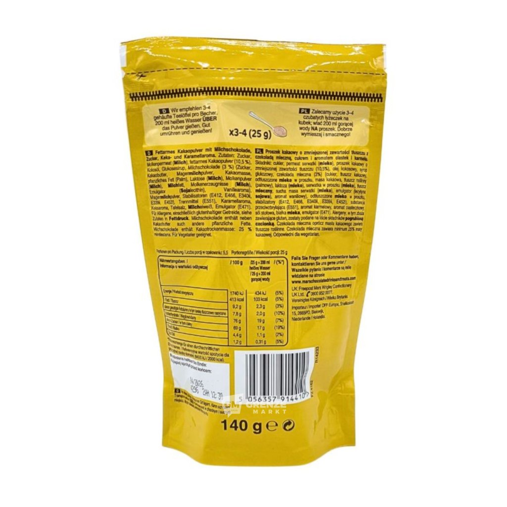 Twix nápoj v prášku horká čokoláda 140g je ideální volbou pro ty, kteří si chtějí dopřát bohatou a sladkou chuť inspirovanou legendární tyčinkou Twix. Kombinace čokolády, karamelu a sušenkové příchuti vytváří dokonale harmonický nápoj – vhodný jak horký, tak studený.