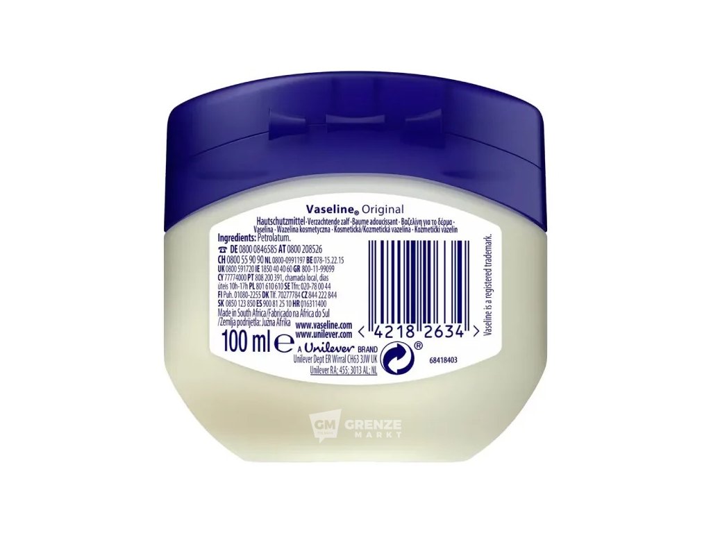 Vaseline čistá vazelína 100 ml je ikonický produkt, který se používá již více než 140 let díky své schopnosti hydratovat, regenerovat a chránit pokožku. Díky čistému složení, trojitému čištění a jemné konzistenci vytváří ochrannou bariéru, která uzamyká vlhkost a podporuje přirozenou obnovu pokožky. Vhodná je pro celou rodinu, včetně citlivé pokožky a jemné pokožky miminek. Jednoduché a účinné řešení pro zdravou a jemnou pokožku každý den.