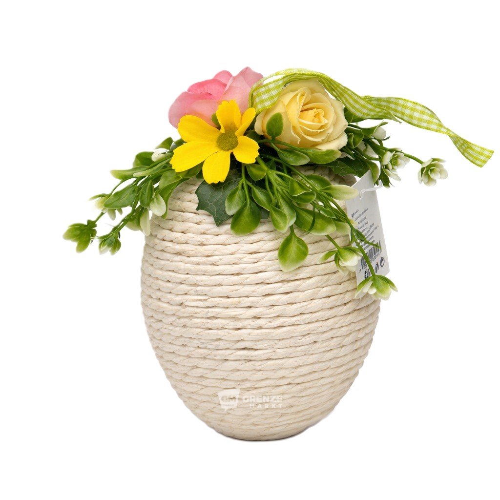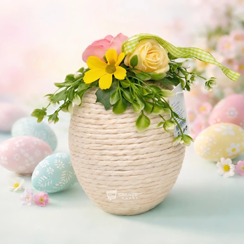Velikonoční vejce bílé S25-44A 21 × 11 × 11 cm je ideální volbou pro ty, kteří oceňují jemnou, elegantní krásu a zároveň chtějí zachovat pravou velikonoční atmosféru. Produkt má charakter ručně vyrobené dekorace, přičemž každý detail je pečlivě zpracován tak, aby celek působil harmonicky a esteticky. Bílý povrch vejce doplněný květinovou dekorací vytváří svěží a vkusný vzhled, který se snadno přizpůsobí různým stylům interiéru.
