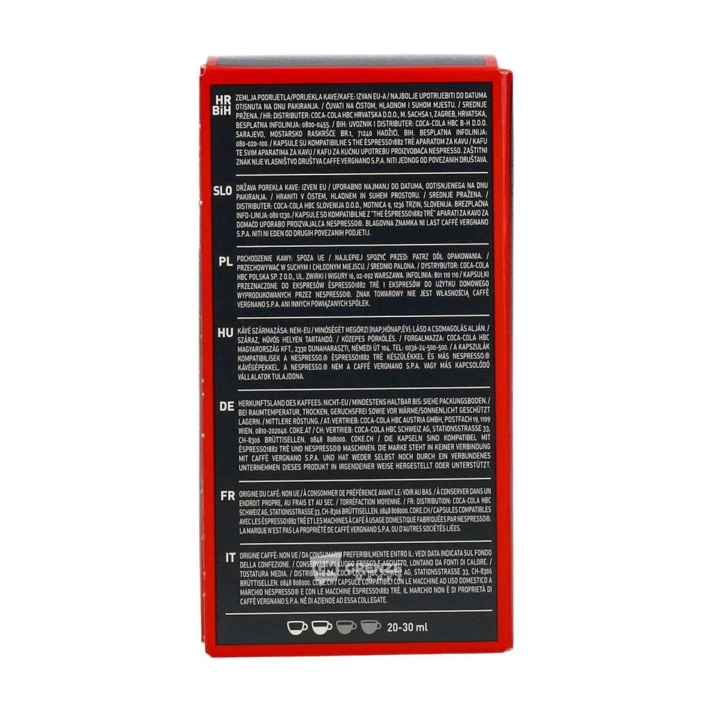 Kapsle Vergnano Nespresso Cremoso 10 kapslí jsou kompatibilní s kávovary Nespresso® Original a Espresso1882. Jednoduše vložte kapsli do kávovaru, zvolte množství vody přibližně 25–40 ml pro aromatické espresso, nebo 60–90 ml pro delší šálek.