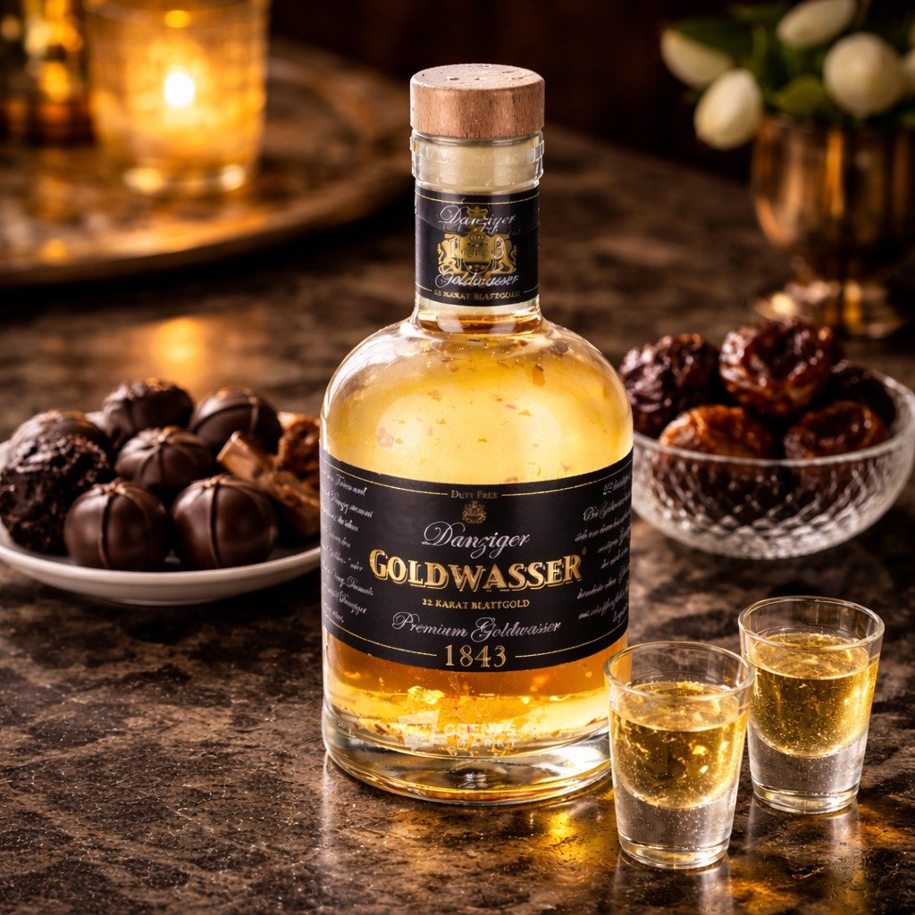 Khoảnh khắc đáng nhớ nhất đến khi bạn xoay nhẹ ly rượu: những vảy vàng 22 karat lấp lánh chuyển động như bụi sao. Vàng không mang giá trị dinh dưỡng, nhưng lại tạo nên trải nghiệm thị giác đầy mê hoặc—khiến mỗi lần thưởng thức Goldwasser trở thành một nghi thức nhỏ, sang trọng và đáng trân trọng.